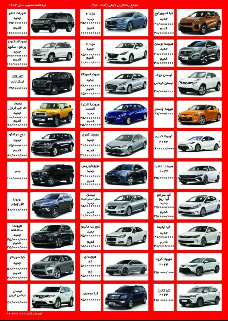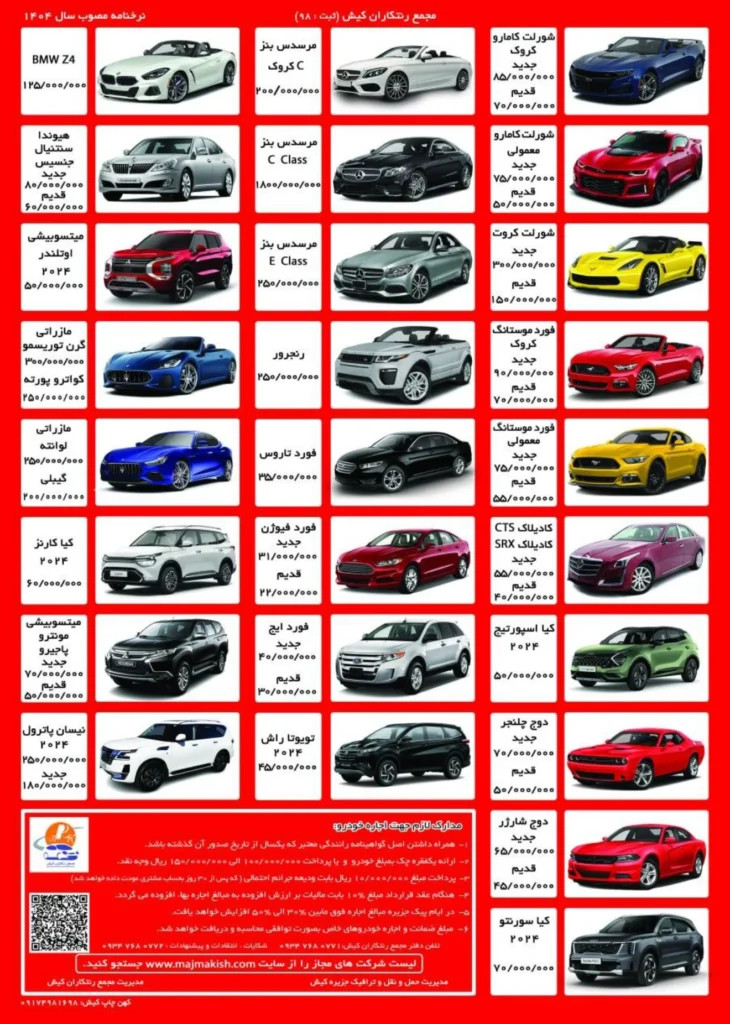 لیست خودرو‌های قابل اجاره در کیش